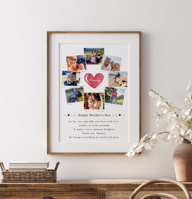 Add your 8 favourite family photo and personalise it with a heartfelt message to create a gift as unique as she is. Elegant, emotional, and timeless, this custom photo print is a touching way to celebrate the ones who hold the family together.