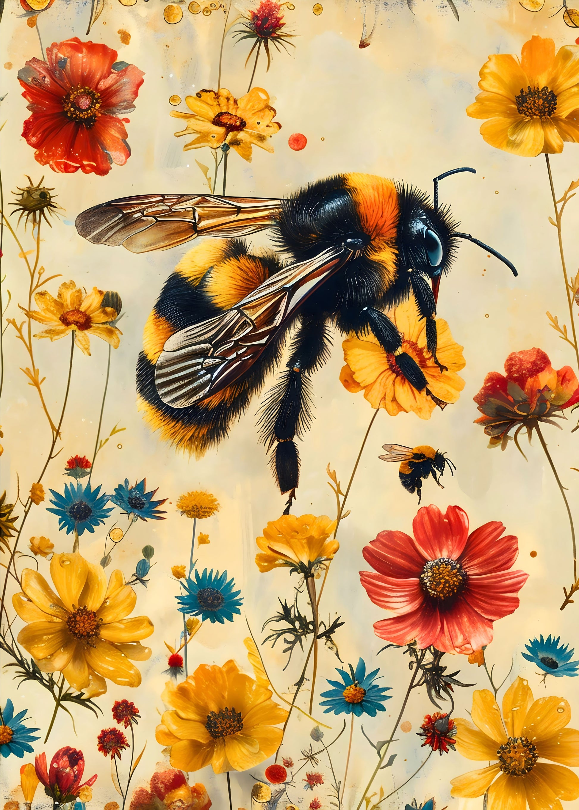 William Morris Bumblebee Motif – Vibrant Wildflower Art Print on Canvas and Paper